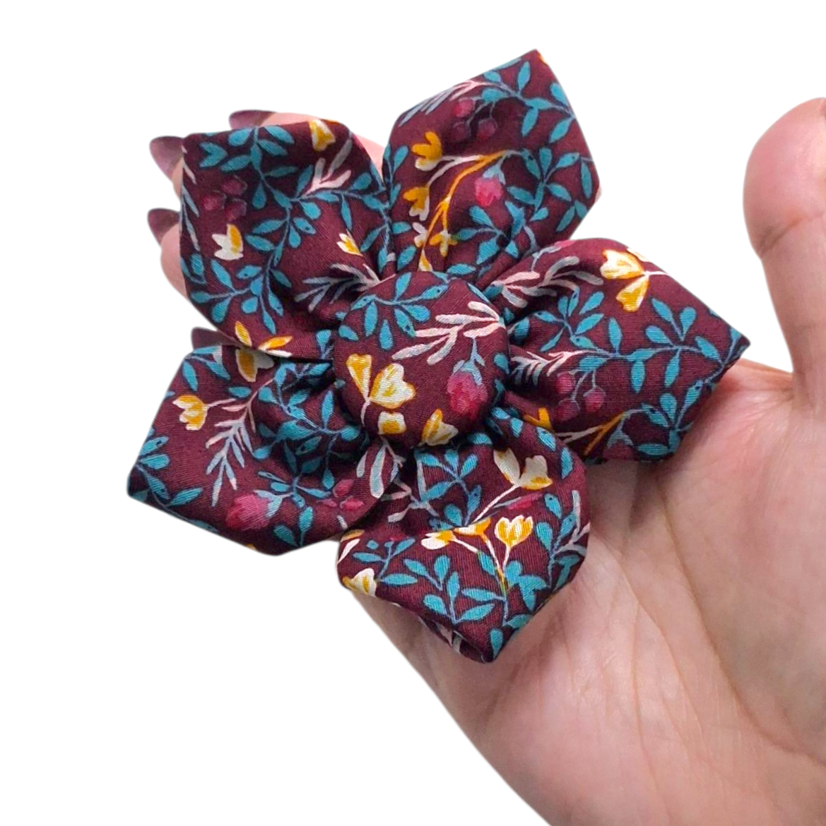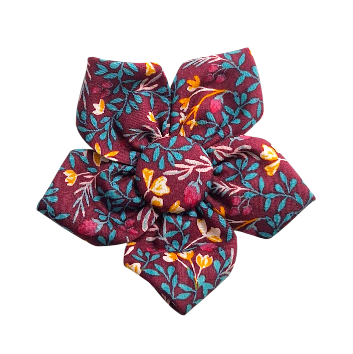 These 5 petal flowers are a unique and stylish accessory to add to your dogs outfit! You can also choose whether to have the centre button in matching fabric or a different colour.